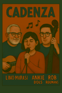 Cadenza heeft ons verrast tijdens de opening van expositie Turn over a New Leaf 3. De band was net geformeerd uit 3 ervaren muzikanten maar ze hadden nog niet samen gespeeld. Na de eerste noot was meteen duidelijk dat het helemaal goed zou komen. En hoe! Lino weet het publiek te vermaken en Ankie, met haar prachtige stem, weet het publiek te raken. Rob maakt het compleet met zijn swingende spel op de contrabas. Af en toe zal het moeilijk zijn om te blijven zitten!